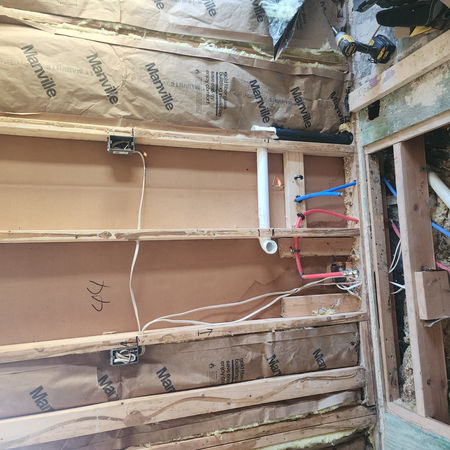 We started by addressing the plumbing and piping, then removed all the drywall since it was contaminated. After fumigating and treating the remaining mold, we re-insulated both the walls and ceiling. Once the plumbing work was completed, the walls were sealed again.